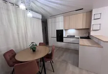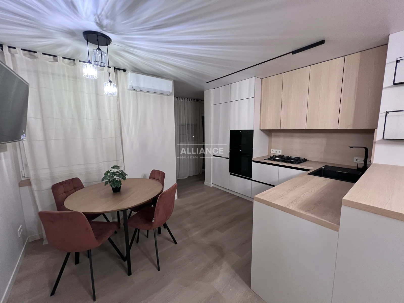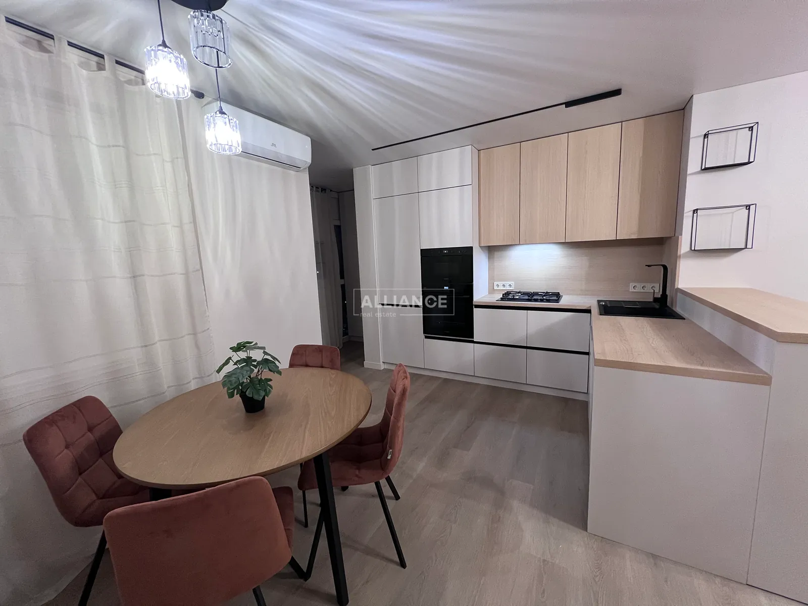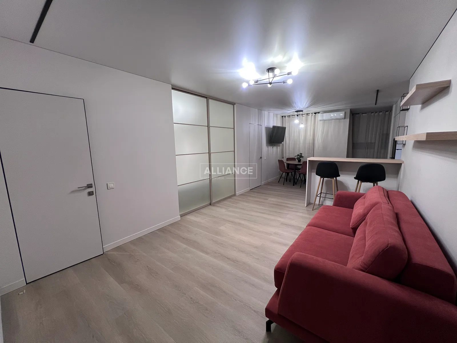 Стильна 2-кімнатна квартира з якісним дизайнерським ремонтом. Всі меблі та техніка залишаються — заїжджай і живи!Вдале планування, простора кухня, панорамні вікна, багато світла.