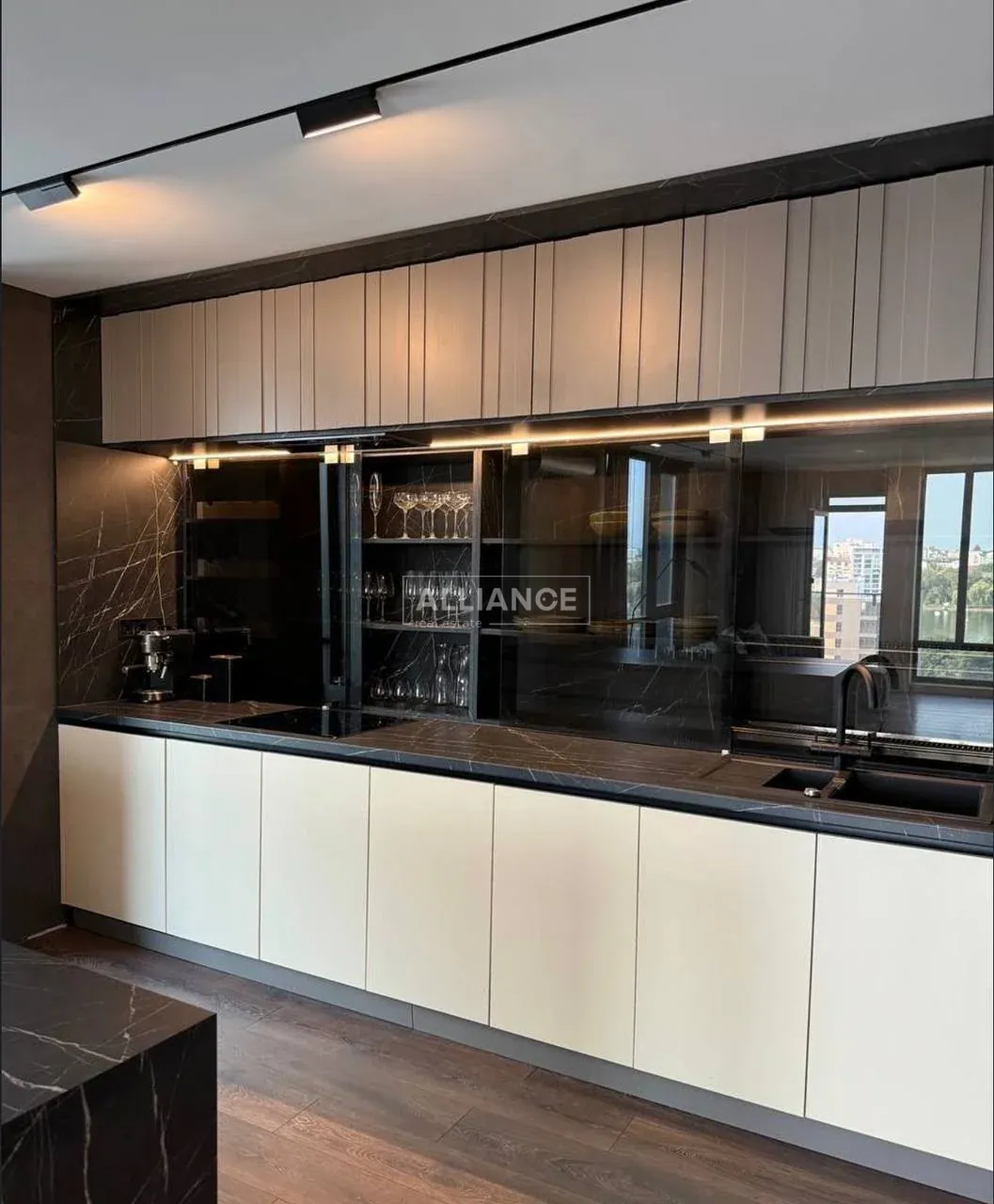 Продається стильна трикімнатна квартира 100 м² у престижному ЖК Manhattan, на 12/13 поверсі, з неперекритими панорамами на міське озеро та центр.