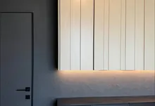 Двері прихованого монтажу зливаються зі стінами, формуючи чисту архітектурну лінію.