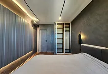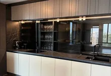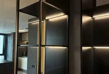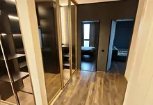 Передбачена гардеробна зі скляними фасадами, з підсвіткою.