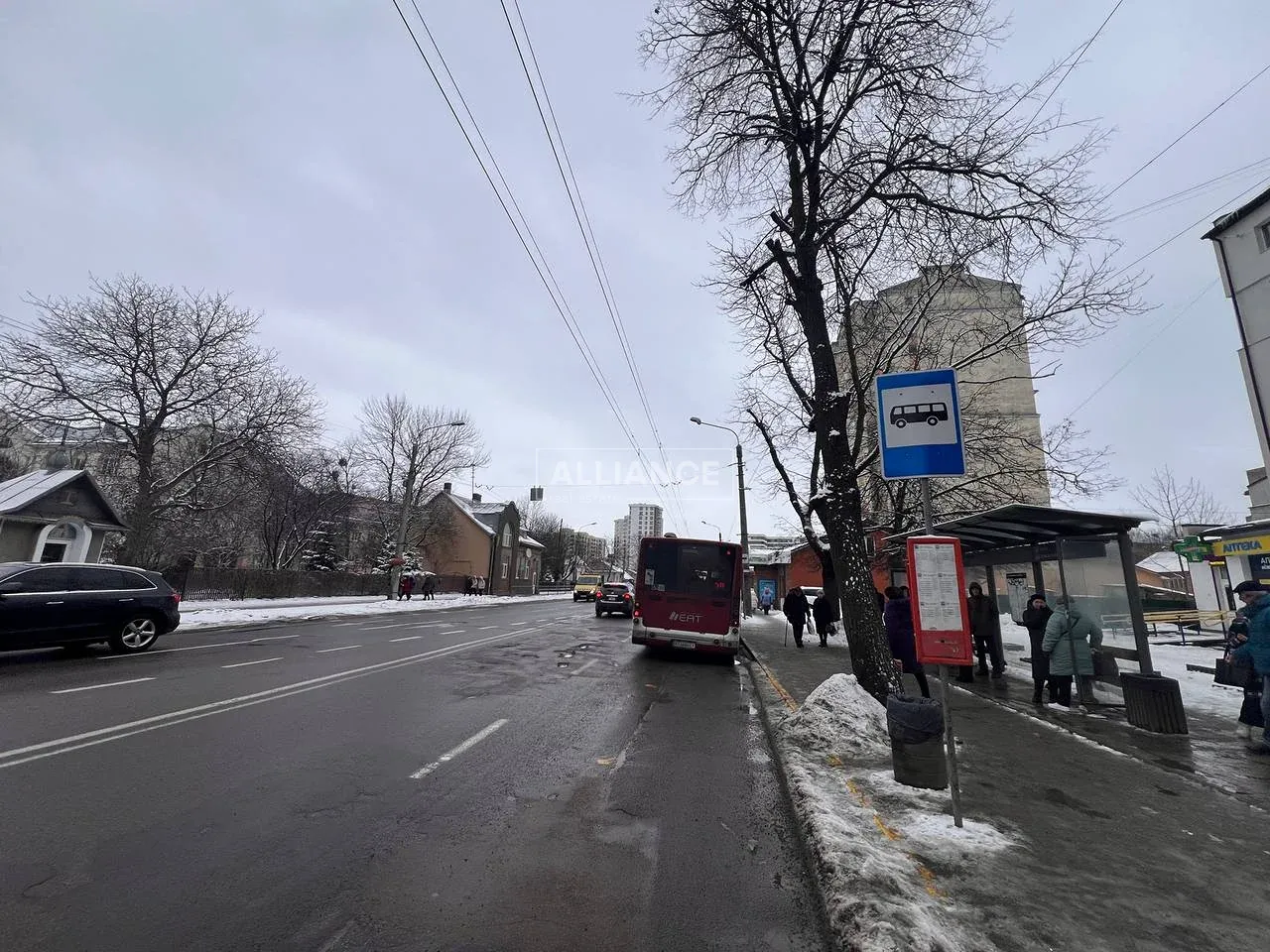 поруч зупинка громадського транспорту