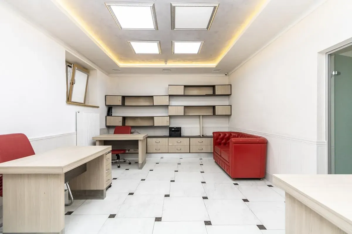 Це приміщення відрізняється не тільки стильним інтерʼєром, а й продуманим плануванням, що дозволяє максимально ефективно організувати робочий процес. Завдяки великій кількості приміщень, приміщення дуже затишне, створюючи комфортні умови для роботи.