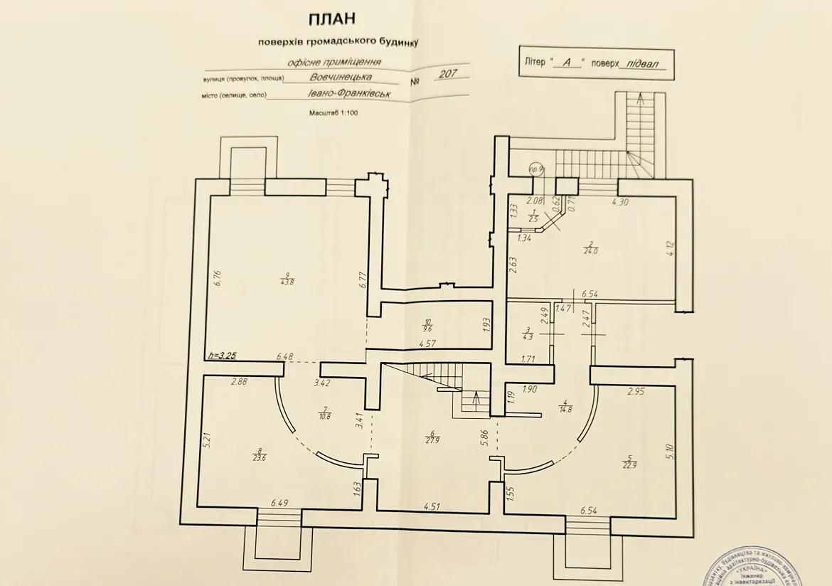 Просторе дворівневе приміщення під офіс (0 та 1й поверх), площею 369м. Зроблено дизайнерський ремонт, всі комунікації, охорона. Встановлено якісні меблі в усіх кабінетах, облаштовано кухню. Поряд – приватна парковка.