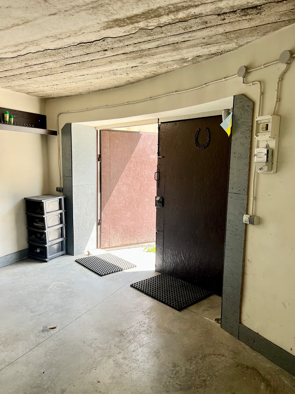 В гаражі є ремонт, залита шліфована підлога, вода, мийка, стелажі.