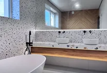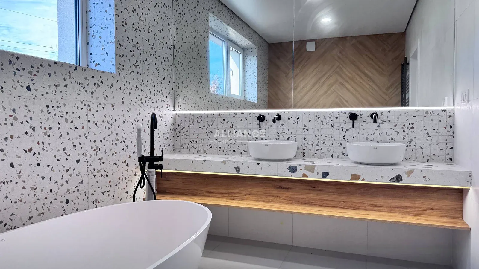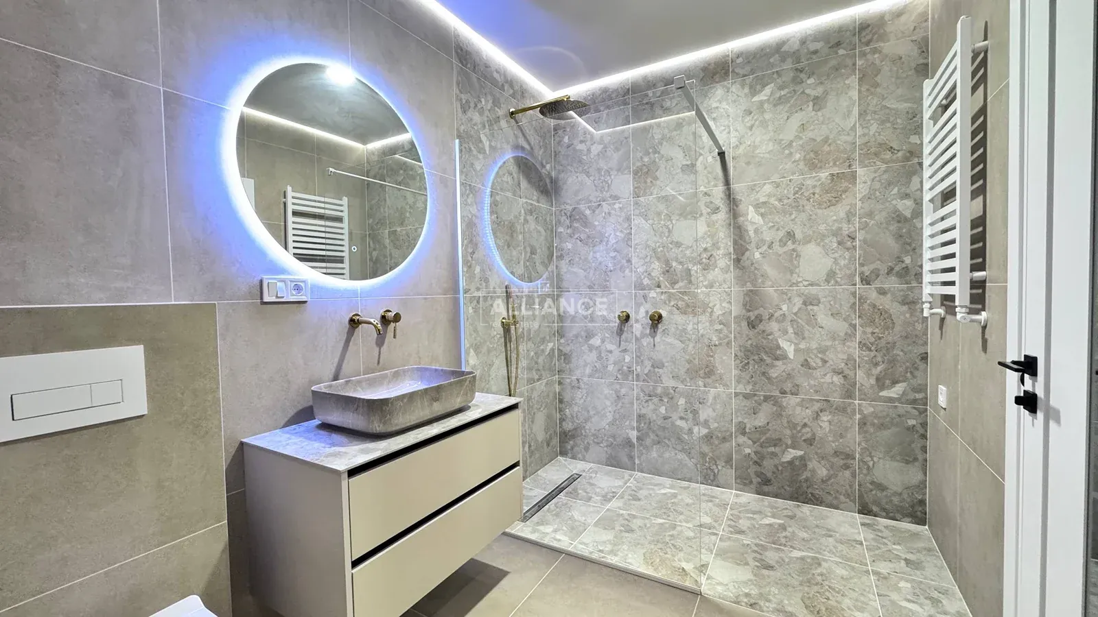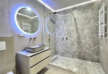 Також є просторий санвузол із ванною, інсталяцією та подвійним рукомийником. А ще гардеробна кімната