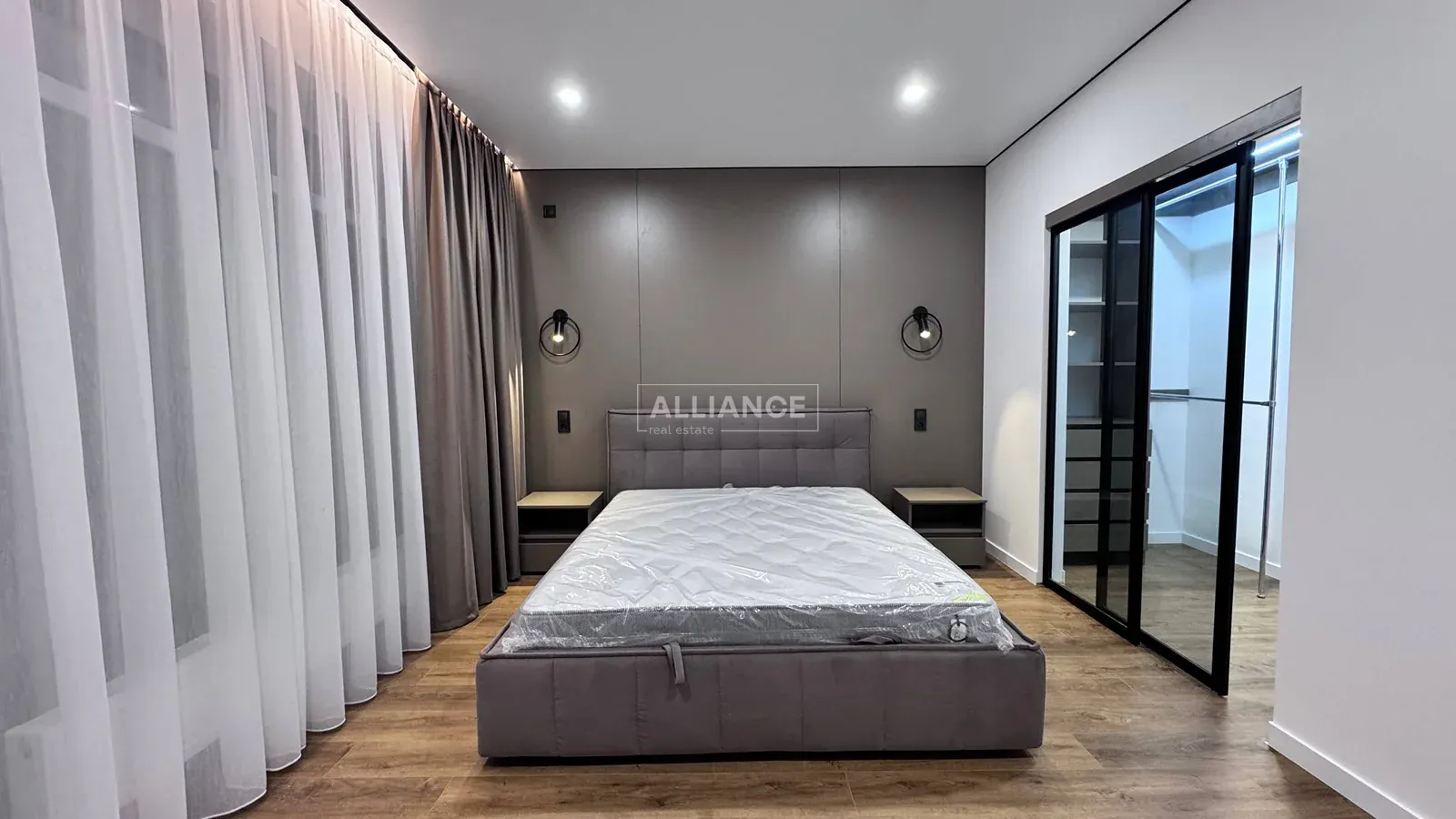 – три окремі кімнати (дві укомплектовані спальні, та одна без). Мастер спаленя має свій санвузол ,гардеробну та вихід на відкритий балкон.