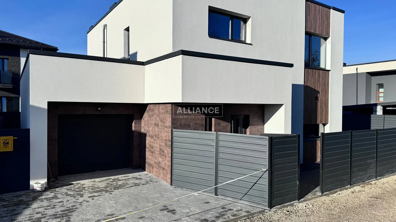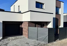 Про територію: по периметру встановлений паркан з вуличною підсвіткою, від дороги встановленна відкидна брама, двір встелений бруківкою та газоном. Перед будинком є додаткова парковка на 2 авто.