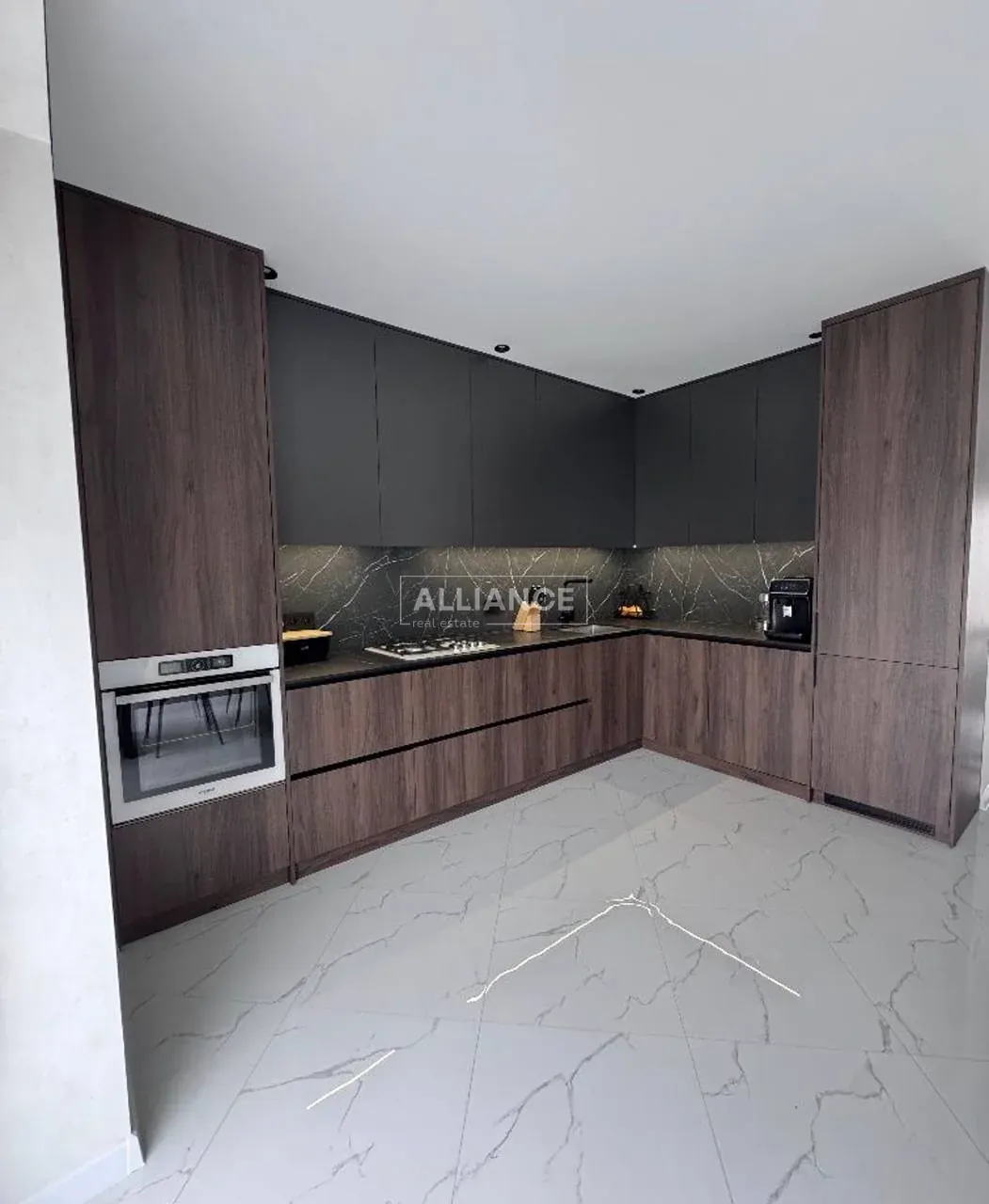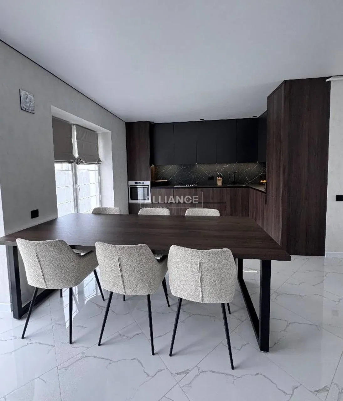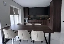 - Меблі та техніка: пральна й сушильна машини, духовка, газова поверхня, посудомийна, вбудований холодильник, кондиціонер, стіл, стільці