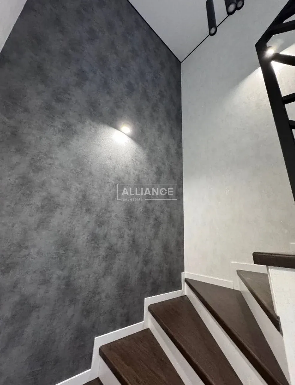 - Сходова з дубовими сходинками та металевими перилами