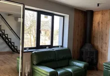 -1 поверх 35м. кухня вітальна, 2 шкіряних дивани (1 розкладний), телевізор 45 дюймів, твердопаливний камін з рукавом на другий поверх, кондиціонер до -20, посудомийна машина, індукційна плита, духова шафа, мікрохвильова піч, витяжка, холодильник, також встановимо нову кухню.