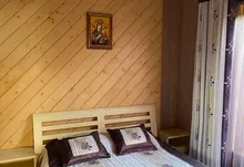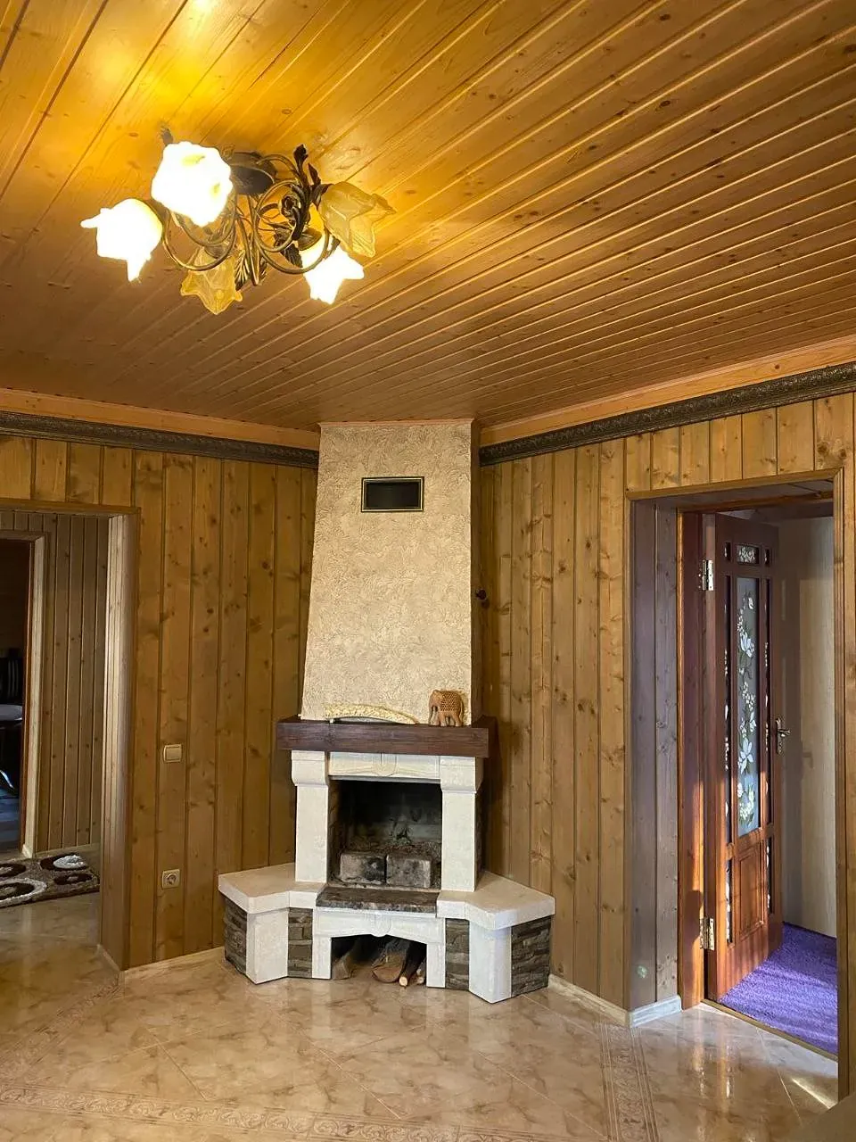 У гостьовому будинку є кухня, вітальня з каміном, спальна кімната, комора, санвузол та сауна з відпочинковою зоною.