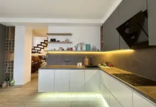 На другому поверсі ванна, три спальні, кожна з балконом, велика ванна з вікном. У ванній тепла підлога. Другий поверх не закінчений ремонт, має чорнову підлогу та поштукатурені стіни. Є дизайн ванної.