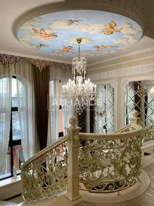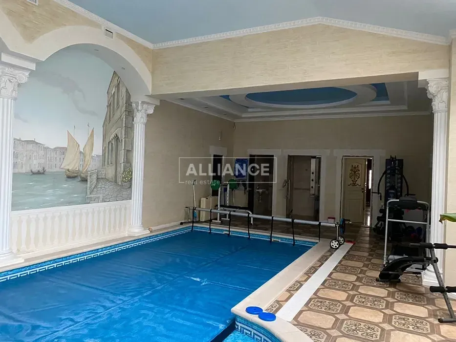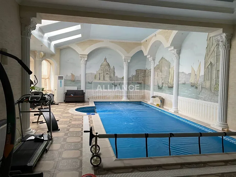 Опис будинку: 1 поверх : - вітальня - кухня - столова - хол - пральня - туалет - басейн - санвузол в басейні - гараж - під гаражем підвал - котельня 2 поверх : - 4 спальні - 3 ванни - 3 гардеробні