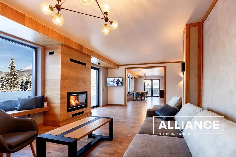 Продається діючий готетельний бізнес,розташований в с.Поляниця Івано-Франківської Обл. Будівля збудована в період з 2019 по 2021 р і введена в експлуатацію з 2022р. Котедж знаходиться поруч з курортом Буковель. Земельна ділянка площею 15сот межує з лісом і дає чудовий панорамний огляд на гори Хом‘як та Синяк. Площа ділянки може бути збільшена за рахунок купівлі прилеглих територій. Будівля 388 м2 виконана в стилі шале з оригінальною архітектурою і дизайном помешкань. Котедж містить 6 спалень з ванними кімнатами, відпочинкову залу з каміном, терасу з диванами, спільну кухню, зону барбек‘ю,кімнату обслуговуючого персоналу та господарські приміщення. На території обладнано відпочинкові зони:басейн з підігрівом,дитячу ігрову площадку. В окремій будівлі розміщується лазня і чан на дровах. Комплекс забезпечений усіма комунікаціями: свердловиною , власною трансформаторною підстанцією, генератор та біосептик. В котеджі створені комфортні умови проживання і відпочинку відвідувачам.