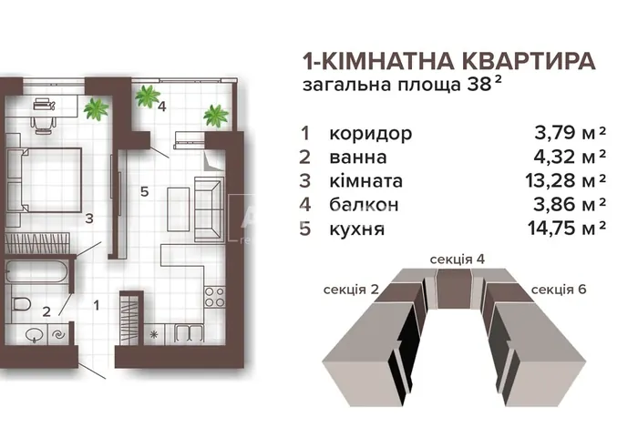 1 кімнатна квартира 44м2 ЖК Manhattan Lite з видом на озеро!