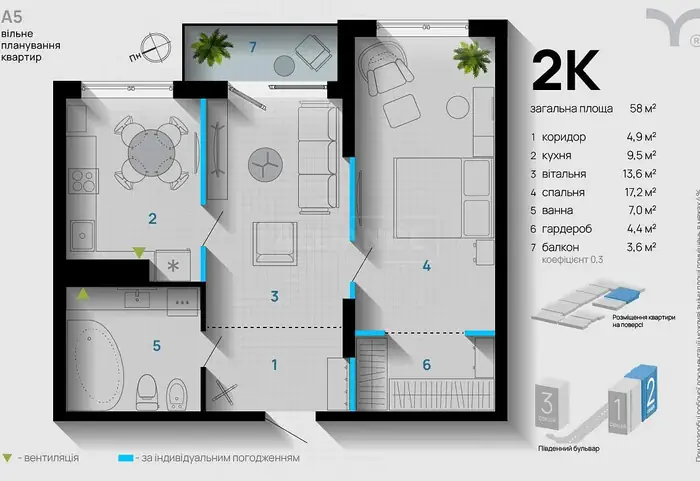 1-кімнатна видова квартира, ЖК Атмосфера,