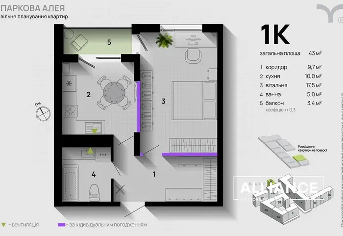 1-кімнатна квартира ЖК Паркова Алея