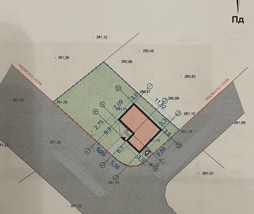 Широка квадратна форма, ділянка кутова, має два заїзди.