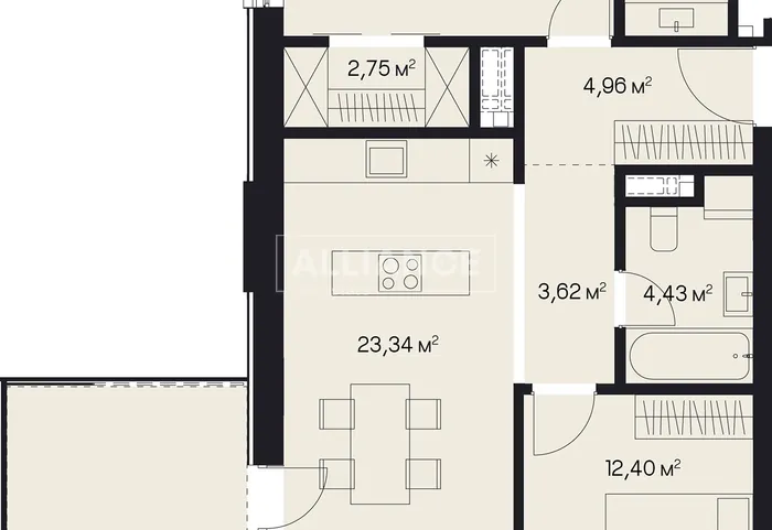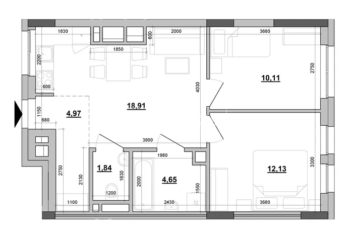 1-кімнатна квартира 46.5 м² з панорамними вікнами — без комісії