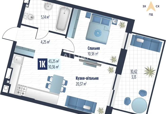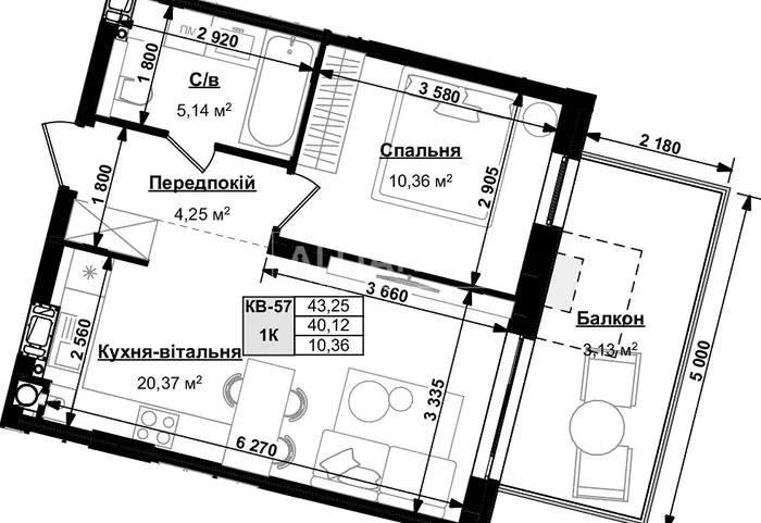 Продаж 1к квартири 43,25 м2. Без комісії для покупця!
